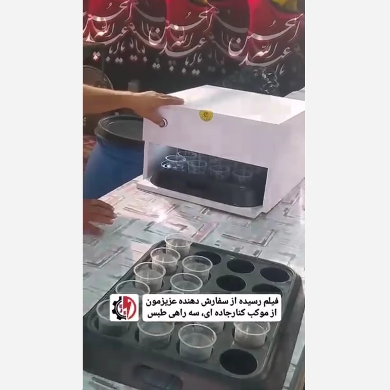 جنس بدنه pvc ضد آب قابل شستشو با پمپ قوی پرکردن 20 لیوان در چند ثانیه پذیرایی با سرعت بالا بدون دخالت دست و کاملا بهداشتی، بدون ریخت و پاش و اسراف دارای مبدل برق شهر به 12 ولت جهت ایمنی دستگاه و جلوگیری از برق گرفتگی قابلیت کارکرد دستگاه با برق خودرو با فیش اضافی جهت اتصال به باطری خودرو درصورت نبود برق دارای سه سال گارانتی تولید شرکت فنی مهندسی الکتروجهان صنعت یزد مستقر در پارک علم و فناوری اقبال یزد